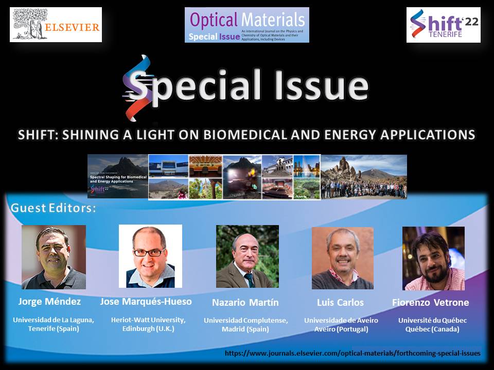 We can proudly announce the launch of a special issue to be publihsed in "Optical Materials" (Elsevier, I.F: 3.754) with selected papers from very relevant colleagues (Plenary, Keynote and Invited speakers) and also contributed auhtors presenting their works at SHIFT 2022 Conference